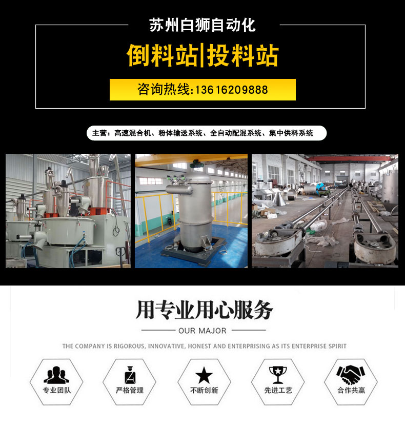 人工投料站(又名人工拆包機(jī)或小包拆包機(jī)):用于小袋物料粉粒體手工拆包卸料到下流設(shè)備的手動設(shè)備。設(shè)備內(nèi)置過濾除塵裝置,使人工在操作中僻免環(huán)境污染及人工呼吸傷害,使人工能在清潔的環(huán)境中輕松工作。