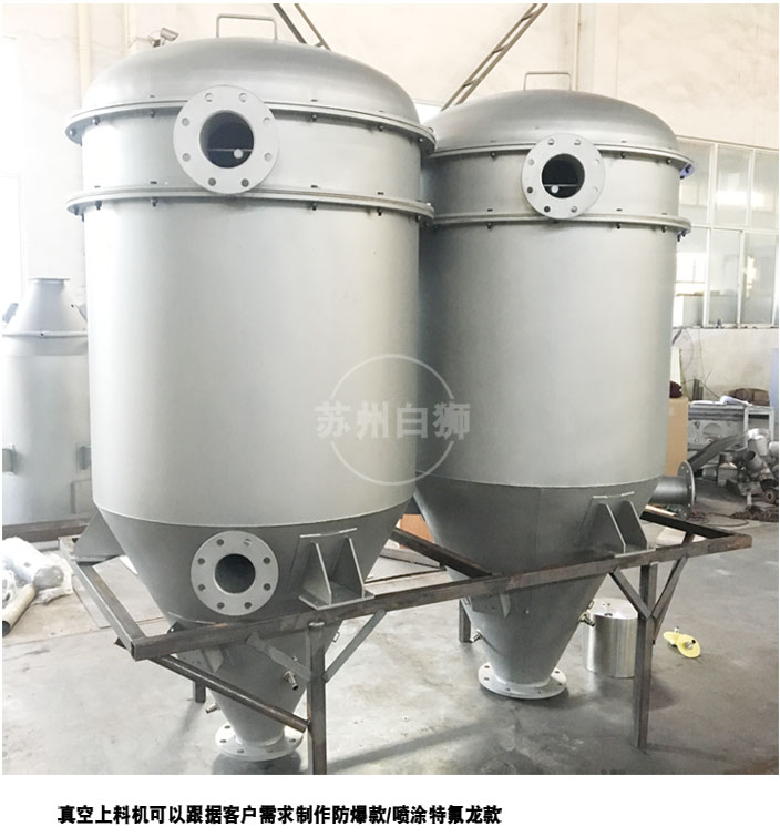 真空粉末吸料機提高了工作效率,運輸精確,質量可靠堅久耐用,并且在送料過程中原料完全不受潮,不受污染,不帶異物,不漏失,實現送料過程自運化,避免高空加料的危險性,降低勞動強度,提高生產效率,是制藥廠、食品廠通過GMP認證、促進清潔、文明生產的優選設備。
