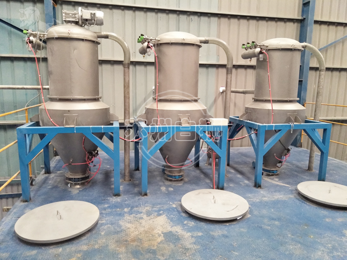 真空上料機是利用真空泵產(chǎn)生負壓氣流,真空產(chǎn)生的負壓將物料從進料口被吸入。然后在在分離容器的過濾倉內(nèi),將空氣與物料進行分離。物料因重力作用而自動落下,物料被收集在料倉中。我們的旋風分離器阻止細小粉末進入過濾器,以提高過濾器的效率。待料倉充滿物料時,真空泵自動關閉,輸送設備內(nèi)的壓力達到平衡。放料閥開啟,物料通過出料口流出,并直接落入儲料容器。出料時,過濾芯被反吹氣囊自動清潔。如物料較為粘稠,我們可以安裝特制的振動器輔助下料;下料結束出料艙自動關閉,整個輸送流程再次啟動。